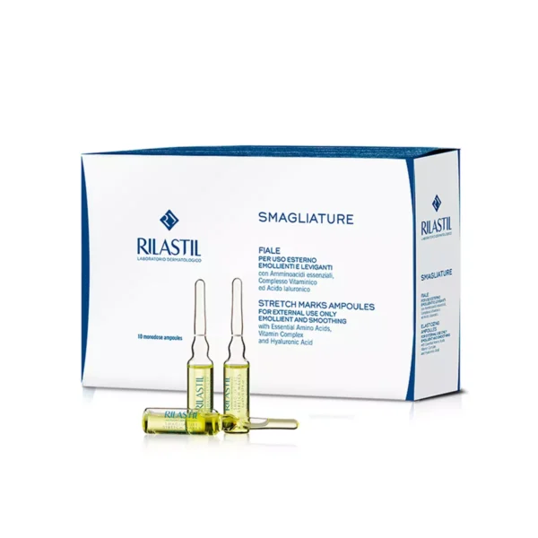 Falë përbërjes së tyre të përthithjes së shpejtë, aplikohen lehtë dhe ofrojne veprim intensiv. Për më tepër, ampulat Smagliature janë pjesë e gamës Rilastil Stretch Marks. Ky grup produktesh fokusohet në parandalimin dhe trajtimin aktiv të shenjave atrofike, të njohura edhe si strijat.Gjithashtu, këto produkte punojnë për të përmirësuar elasticitetin e lëkurës dhe, së dyti, japin hidratim dhe ushqim intensiv.Formulat Rilastil Stretch Marks janë testuar dhe janë të sigurta për t’u përdorur gjatë shtatzënisë dhe ushqyerjes me gji.